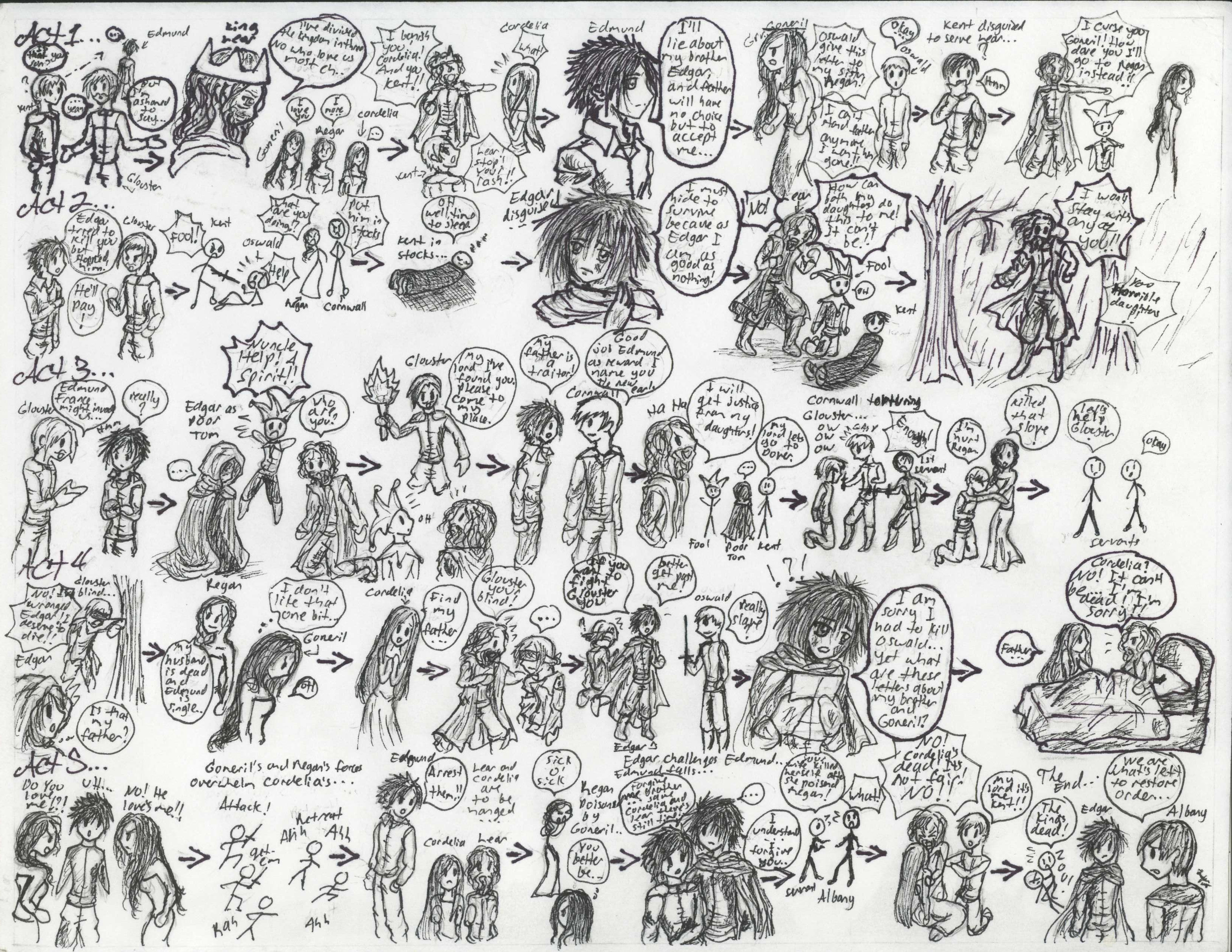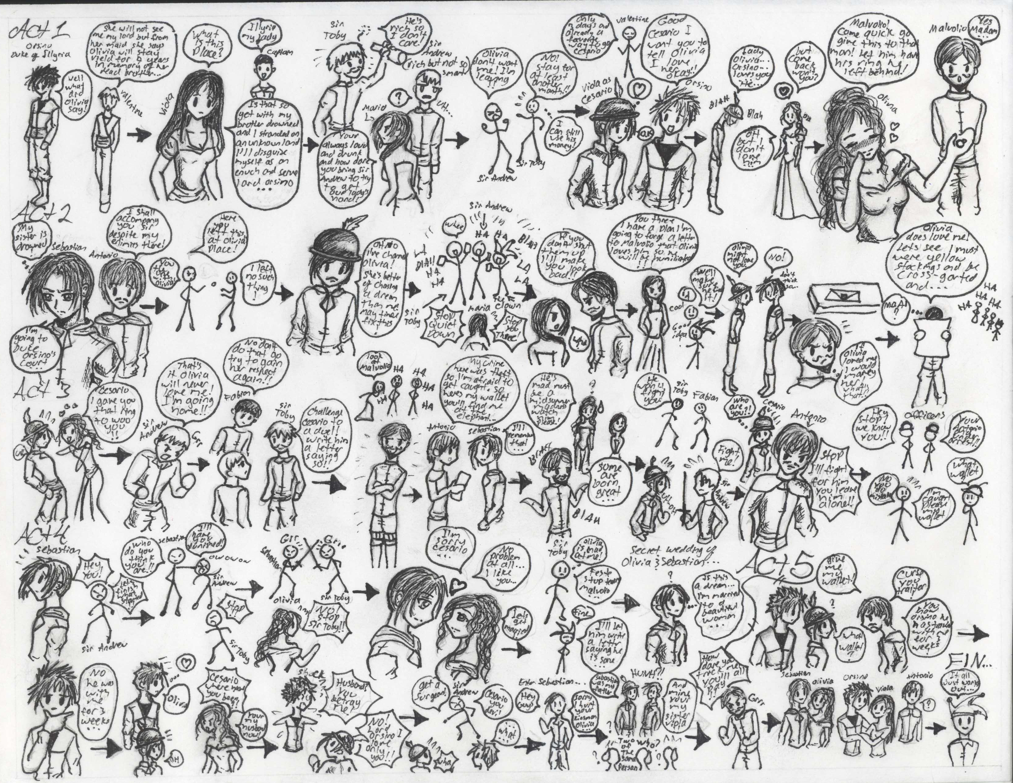 Chapter 6 of Reading Shakespeare with Young Adults (2009) outlines a series of pre-reading plot summarizer activities we can undertake in the classroom before and during our reading of the first act of a play. To help students understand the plot of seven plays they will only read in abridgement, Chapter 8 of Reading Shakespeare Film first (2012) includes a collection of graphic maps. In order to understand the broader context of the scenes excerpted from these plays, students begin by “reading” the plot of the whole play illustrated in each map and making educated guesses about what happens.